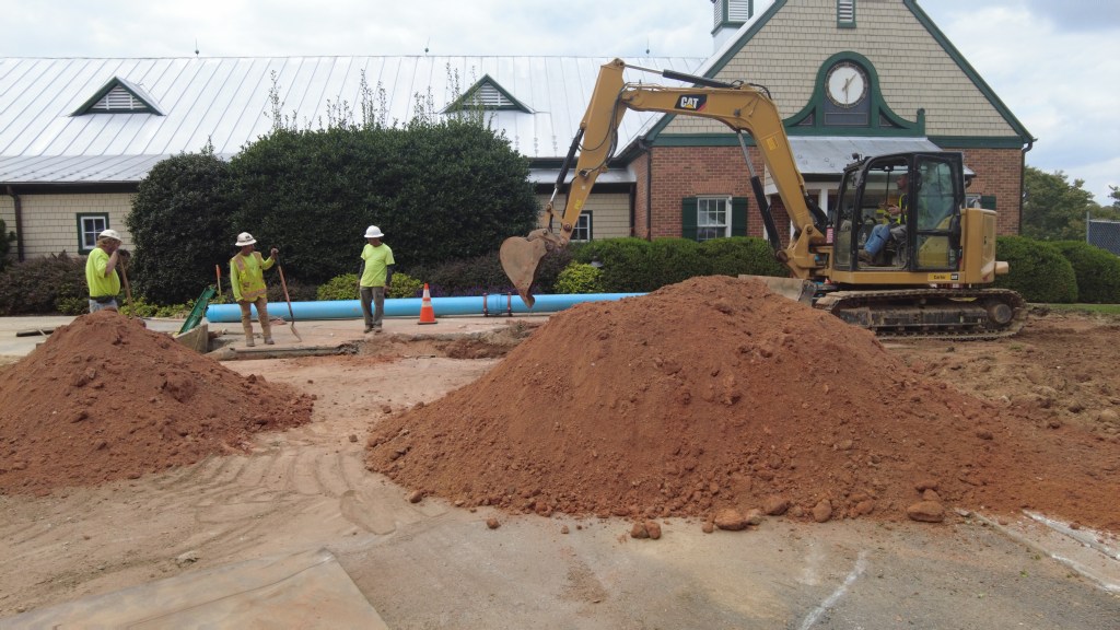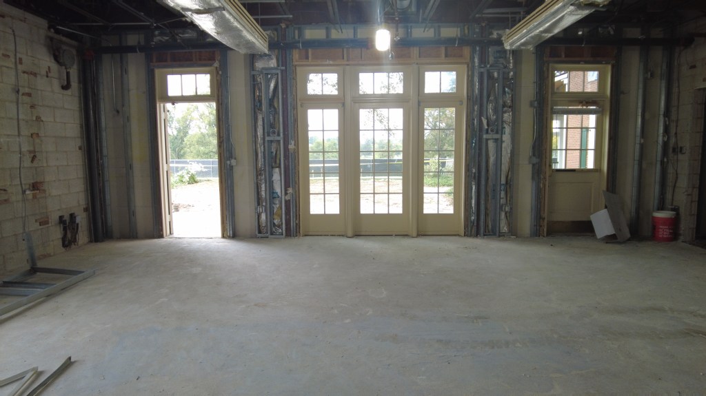 Demolition has continued as the flooring in the Terrace, Tap, Card, and Tillinghast Rooms have been torn up. The biggest shock was to see the awning now completely gone from the Card Room Porch. Additionally, fencing has gone up around the clubhouse to ensure member and guest safety.