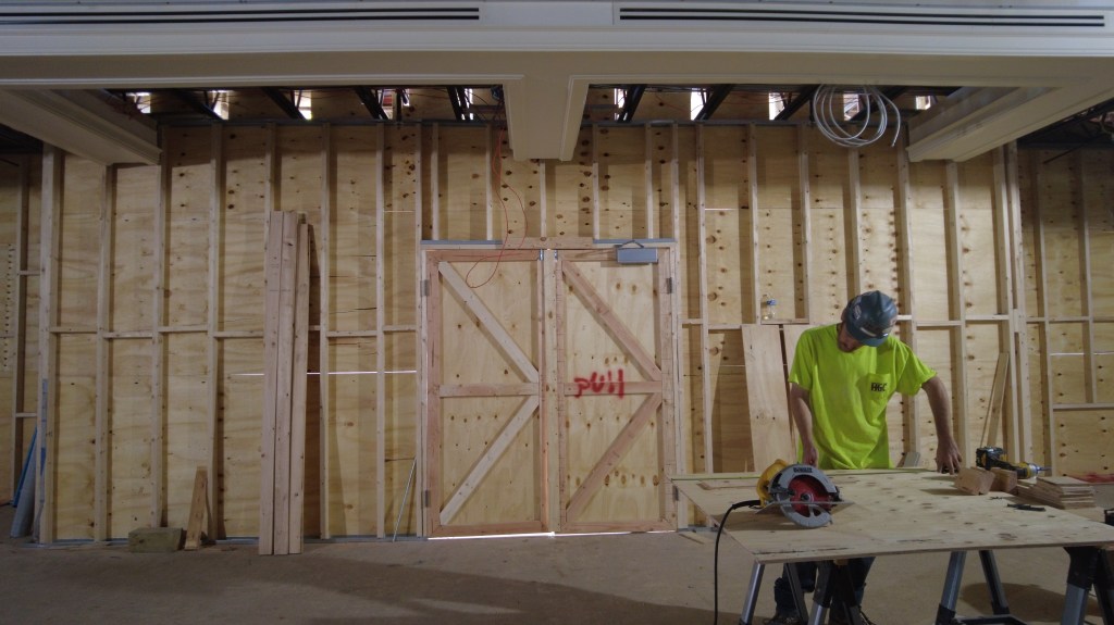 The construction crew has continued installing the new water line up to the side of the clubhouse, where the ground has been excavated, and a new fire hydrant placed. Additionally, some of the sheetrock in the old kitchen was removed due to extreme moisture.