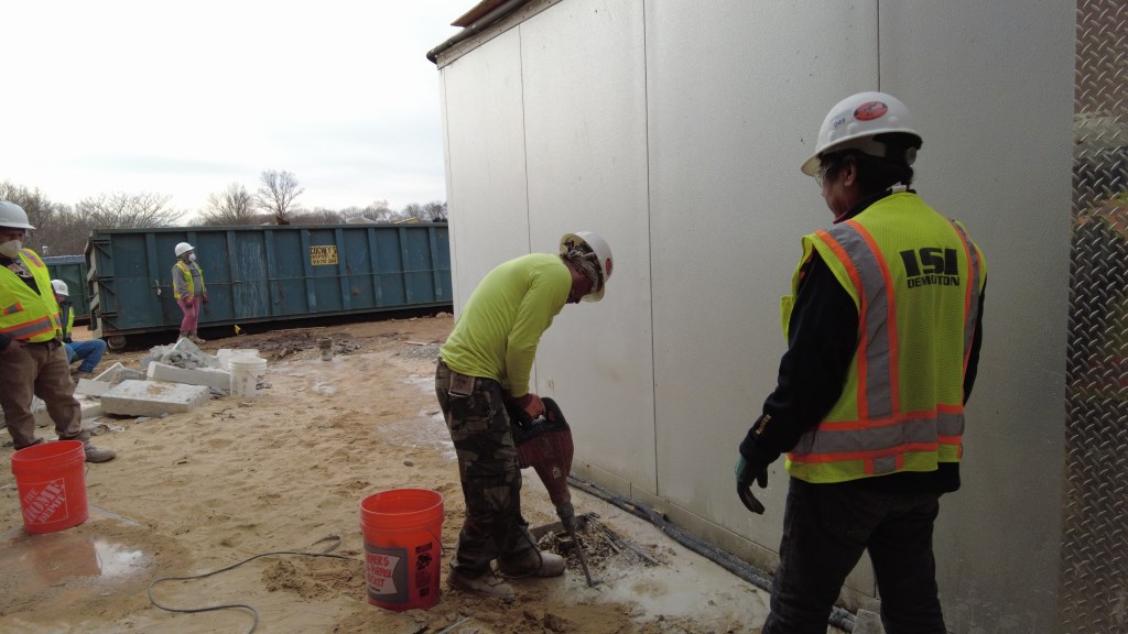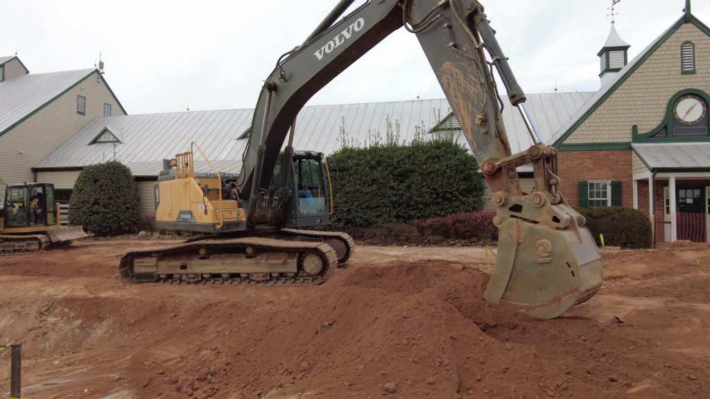 The construction crew has begun installing concrete slabs in the basement area for the clubhouse addition. They have opened up the wall between the Tap Room (future Trophy Bar) and the Main Grill Dining area and have laid brick for the opening between the two rooms. For the Trophy Bar area, they have completed the core drilling to make it easier for the installation of the new plumbing. The construction crew has also framed the future fireplaces, which will be in Main Grill Dining and the Outdoor Patio. Additionally, they have continued installing the new sewer and storm lines and have begun demolition for the foundation of the walls enclosing the new loading dock.
