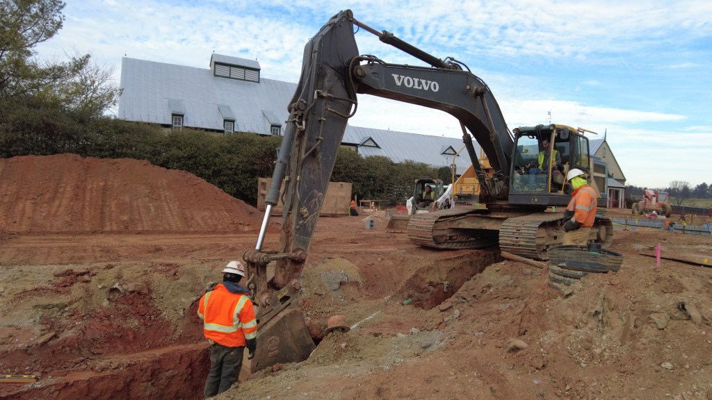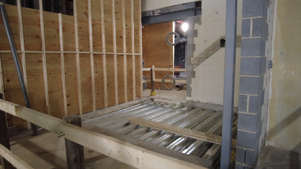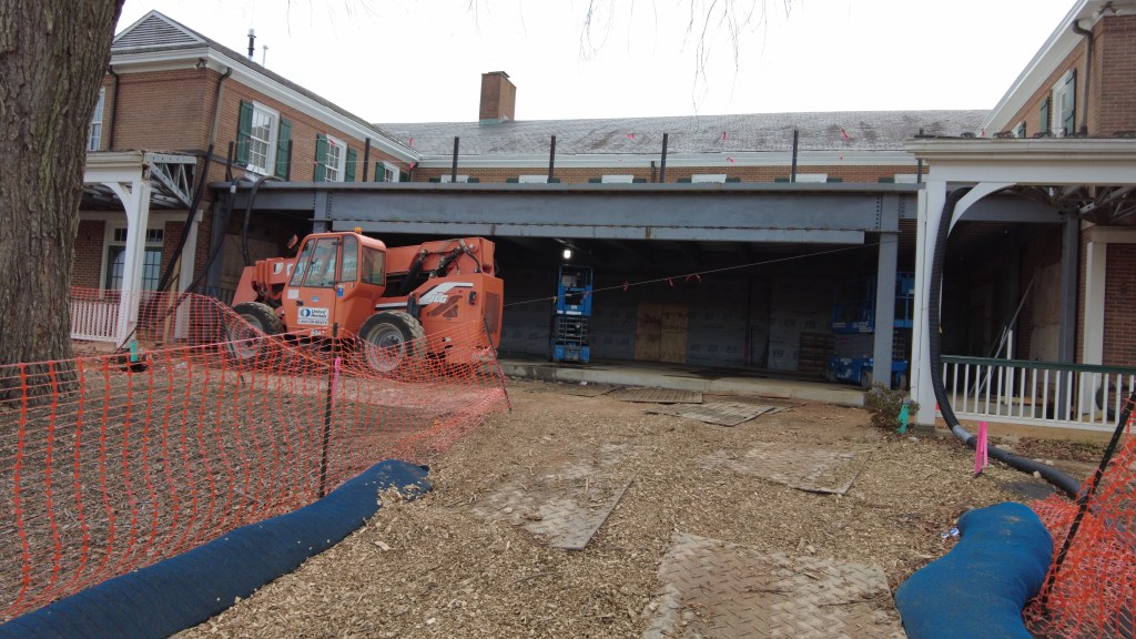 The construction crew continued building the concrete slabs in the basement and installing the wet well in which the sump pump will eventually connect. Steel framing for the East Terrace Room was erected. Above the East Terrace, decking has been installed—which will be used for mechanical purposes. Inside the clubhouse, the construction crew has started to work on the flooring in what will be the wine storage room. Storm pipe installation continues.